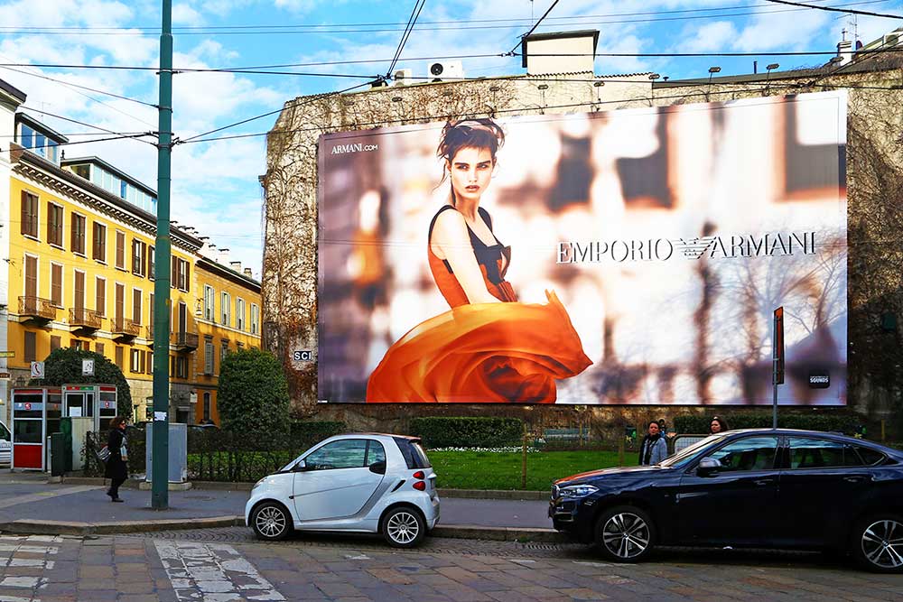 Cartellonistica: Pubblicità stampate su carta o in PVC con sistema di illuminazione dedicato per presidiare una determinata zona della città.